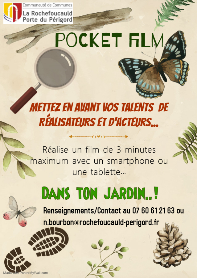 - Envoyer au plus tard le 30 avril 2020 à n.bourbon@rochefoucauld-perigord.fr : Fiche d’inscription complétée / Autorisation parentale (mineurs) / Votre film (fiche ressource p.5 - Comment envoyer son film ?)