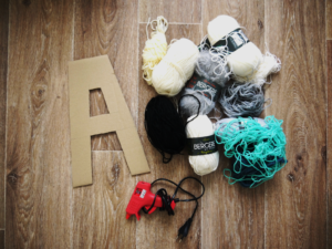 Entourer chaque lettre de laine jusqu’à ce qu’on ne voit plus le carton.