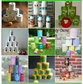 Avec 6 ou 10 boîtes de conserve, rouleaux de papier toilette entiers ou seulement les tubes, verres en