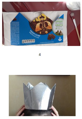 3, 4 et 5. Je découpe du papier aluminium et je le colle sur la couronne.
