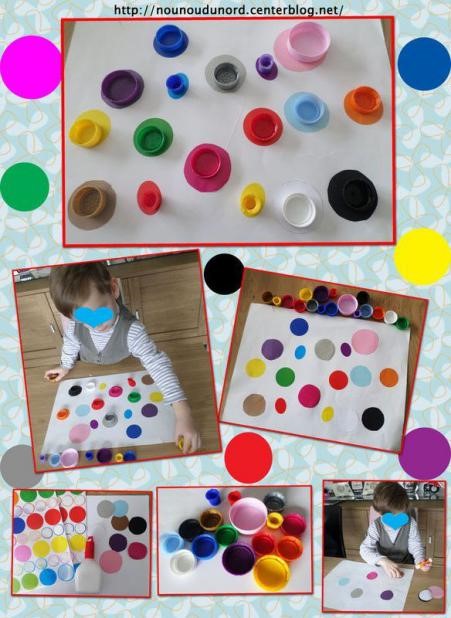 => fouiner dans la maison pour récupérer plusieurs bouchons de bouteilles de différentes couleurs