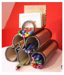 > disposer les rouleaux de papier toilette joliment décorés debout dans la boite