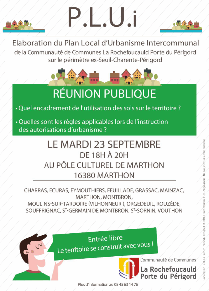 PLUi du périmètre ex Seuil-Charente-Périgord* : réunions publiques d’information sur la traduction réglementaire du Projet d’Aménagement et de Développement Durables (PADD)