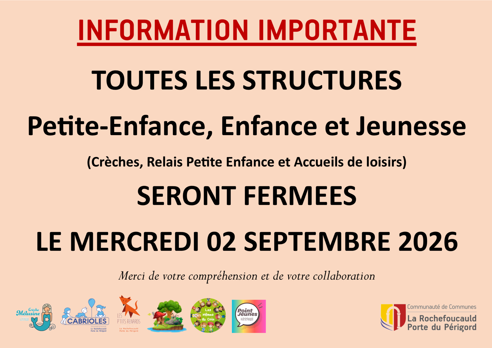 INFORMATION IMPORTANTE RENTREE SEPTEMBRE 2026