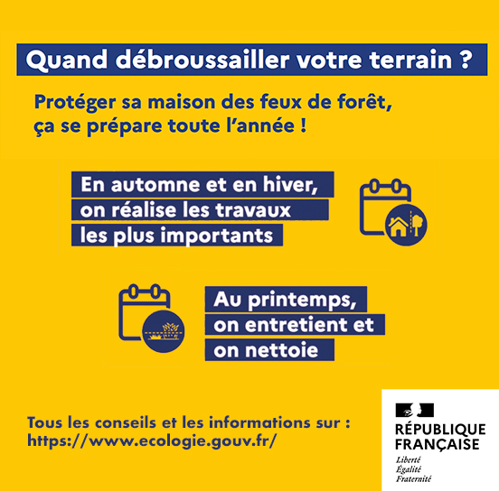 Afin de vous permettre de connaître précisément vos obligations et de bénéficier de conseils éclairés pour organiser et réaliser un débroussaillement efficace, l’État à mis en place un site entièrement dédié à ces questions :