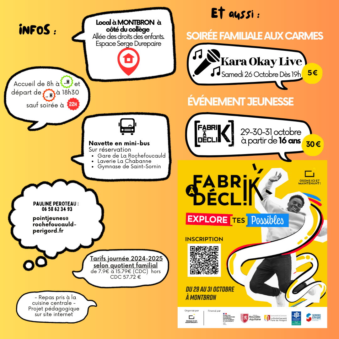 Contact : Pauline PEROTEAU Tél. : 06 58 62 34 93 Courriel : pointjeunes@rochefoucauld-perigord.fr