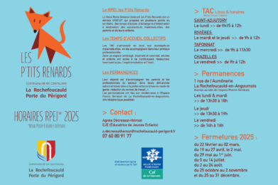 - les mardis de 09h00 à 12h00 à Rivières (salle des fêtes Espace Ripériis)