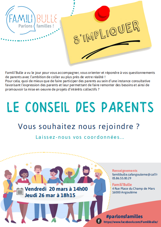 Conseil des parents de Famili’Bulle + Ajouter à mon Agenda Google + iCal / Outlook export Date 26 Mar 2020 Expired! Heure 18 h 15 min Lieu Famili'Bulle Centre Commercial, 4 Place du Champ de Mars, 16000 Angoulême Catégorie Actus partenaires Organisateur Famili'Bulle - Caisse d'Allocations Familiales Téléphone 05 86 55 00 29 Email familibulle.cafangouleme@caf.fr Site Web http://@familibulle Partagez cet événement