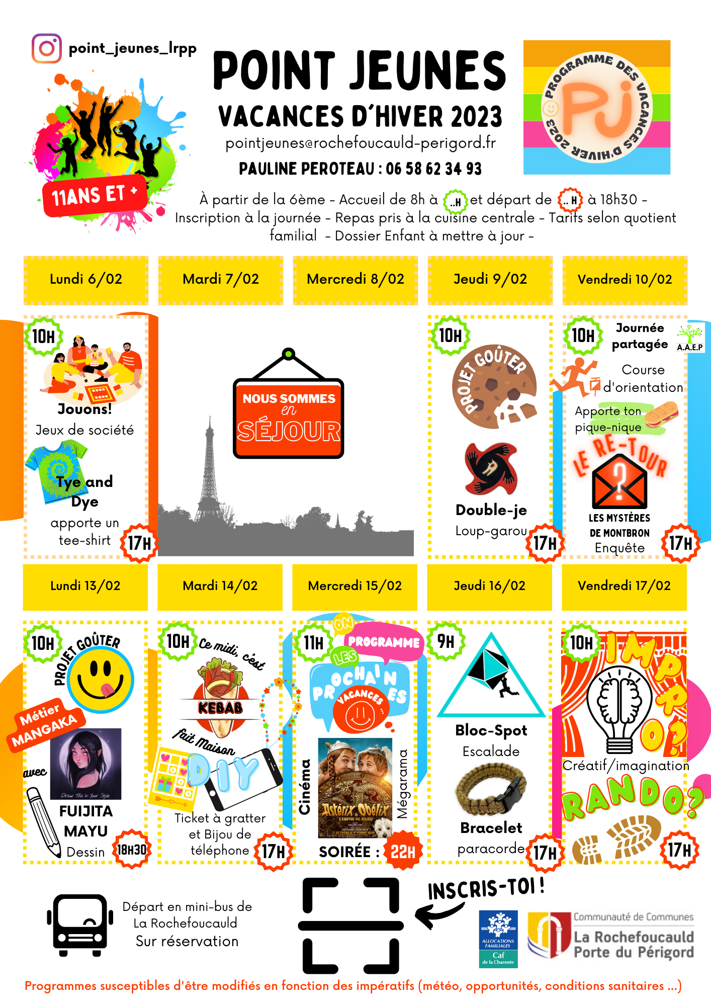 Pour les nouvelles familles, pensez à remettre le NOUVEAU dossier ENFANT complet, par mail, à l'adresse suivante b.petit@rochefoucauld-perigord.fr.
